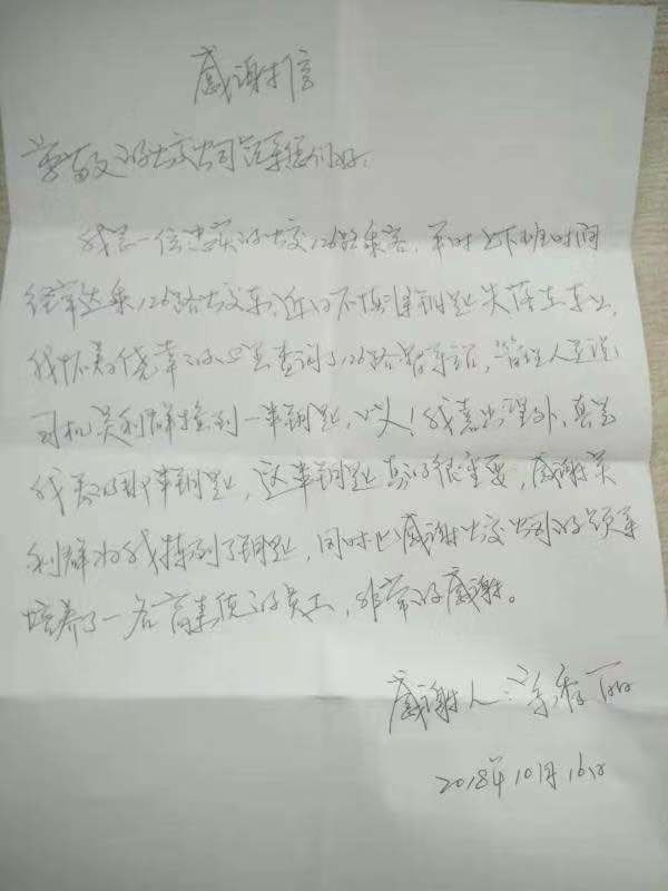 2018年10月16日,一公司三隊(duì)126線駕駛員吳立群在車上撿到一串鑰匙,交給當(dāng)班調(diào)度,事后失主到調(diào)度室尋找,找到了自己的鑰匙,很是感謝,并送來感謝信一封表達(dá)自己的感激之情。