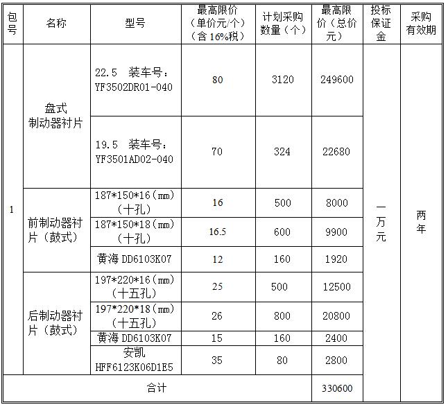 (1)車用制動(dòng)器襯片的技術(shù)參數(shù)要求按《GB5763-2008汽車用制動(dòng)器襯片》執(zhí)行; (2)帶緩速器的鼓式制動(dòng)器襯片行駛里程應(yīng)大于6萬公里,盤式制動(dòng)器襯片應(yīng)大于6萬公里。 (3)投標(biāo)人須提供投標(biāo)產(chǎn)品由國(guó)家權(quán)威部門、國(guó)家認(rèn)可實(shí)驗(yàn)室或具有資質(zhì)的第三方實(shí)驗(yàn)室出具的質(zhì)檢報(bào)告(其中,國(guó)家認(rèn)可實(shí)驗(yàn)室證書、具有資質(zhì)的第三方實(shí)驗(yàn)室證書也需一并附在響應(yīng)文件中)。 3.包裝要求 制動(dòng)器襯片要求有完好的包裝,要適用于長(zhǎng)途運(yùn)輸和多次搬運(yùn)并具有一定的防腐和防潮等措施,以保證制動(dòng)器襯片的質(zhì)量。 4.項(xiàng)目說明 (1)本項(xiàng)目采購內(nèi)容共1個(gè)合同包,投標(biāo)人對(duì)所投包的采購內(nèi)容必須全投; (2)總報(bào)價(jià)不能超過總價(jià)最高限價(jià),否則總報(bào)價(jià)按總價(jià)最高限價(jià)處理。每個(gè)型號(hào)的報(bào)價(jià)不能超過該型號(hào)采購單價(jià)最高限價(jià),否則報(bào)價(jià)按單價(jià)最高限價(jià)處理。 二、合格投標(biāo)人的資格條件 投標(biāo)人應(yīng)具有以下資歷: 1.具有獨(dú)立法人資格、良好的信譽(yù),獨(dú)立履行合同能力和一定的資金墊付能力。 2.投標(biāo)人必須為投標(biāo)產(chǎn)品的生產(chǎn)廠家或生產(chǎn)廠家正式授權(quán)的代理商。 3.公交車用制動(dòng)器襯片的生產(chǎn)企業(yè)必須通過ISO9001:2008或ISO9001:2015或ISO/TS16949質(zhì)量體系認(rèn)證。 4.公交車用制動(dòng)器襯片須近三年被地市級(jí)公交企業(yè)批量使用(500個(gè)以上)或?yàn)榭蛙噺S批量配套(500個(gè)以上),提供合同和結(jié)賬發(fā)票復(fù)印件。 5.符合《中華人民共和國(guó)政府采購法》第二十二條規(guī)定應(yīng)當(dāng)具備的條件。 6.應(yīng)自覺抵制采購領(lǐng)域商業(yè)賄賂行為。 7.能夠提供快速、良好的售后服務(wù)。 8.投標(biāo)人所投產(chǎn)品須為正品行貨。 9.投標(biāo)人未被最高人民法院在“信用中國(guó)”網(wǎng)(www.creditchina.gov.cn)中列入失信被執(zhí)行人名單。 三、報(bào)名須知 有意向參與本次采購的供應(yīng)商可于2019年 1月23日至1月30日(節(jié)假日除外)到招標(biāo)辦公室(鞍山市鐵西區(qū)八家子街2號(hào),物資供應(yīng)分公司會(huì)議室)報(bào)名。 報(bào)名時(shí)需攜帶以下文件: 1.營(yíng)業(yè)執(zhí)照副本復(fù)印件并加蓋投標(biāo)人公章。 2.代理商須出具生產(chǎn)廠家頒發(fā)的代理授權(quán)書復(fù)印件并加蓋投標(biāo)人公章。 3.所投產(chǎn)品的“ISO9001:2008”或“ISO9001:2015”或“ISO/TS16949”質(zhì)量體系認(rèn)證證書復(fù)印件并加蓋投標(biāo)人公章。 4.公交車用制動(dòng)器襯片近三年被地市級(jí)公交企業(yè)批量使用(500個(gè)以上)或?yàn)榭蛙噺S批量配套(500個(gè)以上)的合同和結(jié)賬發(fā)票復(fù)印件加蓋投標(biāo)人公章。 5.投標(biāo)產(chǎn)品由國(guó)家權(quán)威部門、國(guó)家認(rèn)可實(shí)驗(yàn)室或具有資質(zhì)的第三方實(shí)驗(yàn)室出具的產(chǎn)品質(zhì)量符合國(guó)家標(biāo)準(zhǔn)的質(zhì)檢報(bào)告(其中,國(guó)家認(rèn)可實(shí)驗(yàn)室證書、具有資質(zhì)的第三方實(shí)驗(yàn)室證書也需提供)。 四、資格審查 本項(xiàng)目投標(biāo)人的資格條件在評(píng)審時(shí)由談判小組的資質(zhì)評(píng)審專家進(jìn)行審查。投標(biāo)人應(yīng)在響應(yīng)文件中按采購文件的規(guī)定和要求附上資格證明文件,若提供的資格證明文件不全或不實(shí),將導(dǎo)致其響應(yīng)無效或投標(biāo)人資格被取消。 五、遞交響應(yīng)文件截止時(shí)間、開標(biāo)時(shí)間及開標(biāo)地點(diǎn) 遞交響應(yīng)文件截止及開標(biāo)時(shí)間:1月31日早8:30 遞交響應(yīng)文件及開標(biāo)地點(diǎn):鞍山市交通運(yùn)輸集團(tuán)有限公司14樓會(huì)議室,屆時(shí)請(qǐng)投標(biāo)人的法定代表人或其授權(quán)代表按時(shí)參加采購會(huì)議。 投標(biāo)人當(dāng)天需提前十五分鐘到開標(biāo)地點(diǎn)繳納投標(biāo)保證金。采購會(huì)議開始前五分鐘停止收取保證金,過時(shí)一概不予收取。 六、響應(yīng)文件的送達(dá) 響應(yīng)文件必須在遞交響應(yīng)文件截止時(shí)間前送達(dá)開標(biāo)地點(diǎn),逾期送達(dá)或密封和標(biāo)注不符合采購文件規(guī)定的響應(yīng)文件恕不接受。本次采購不接受郵寄的響應(yīng)文件。 七、采購單位、地址和聯(lián)系方式 采購單位:鞍山市交通運(yùn)輸集團(tuán)有限公司 地 址:鞍山市鐵東區(qū)民生東路1號(hào) 聯(lián) 系 人:陳瑩 聯(lián)系電話:0412-5600945 手 機(jī): 15241271775 |