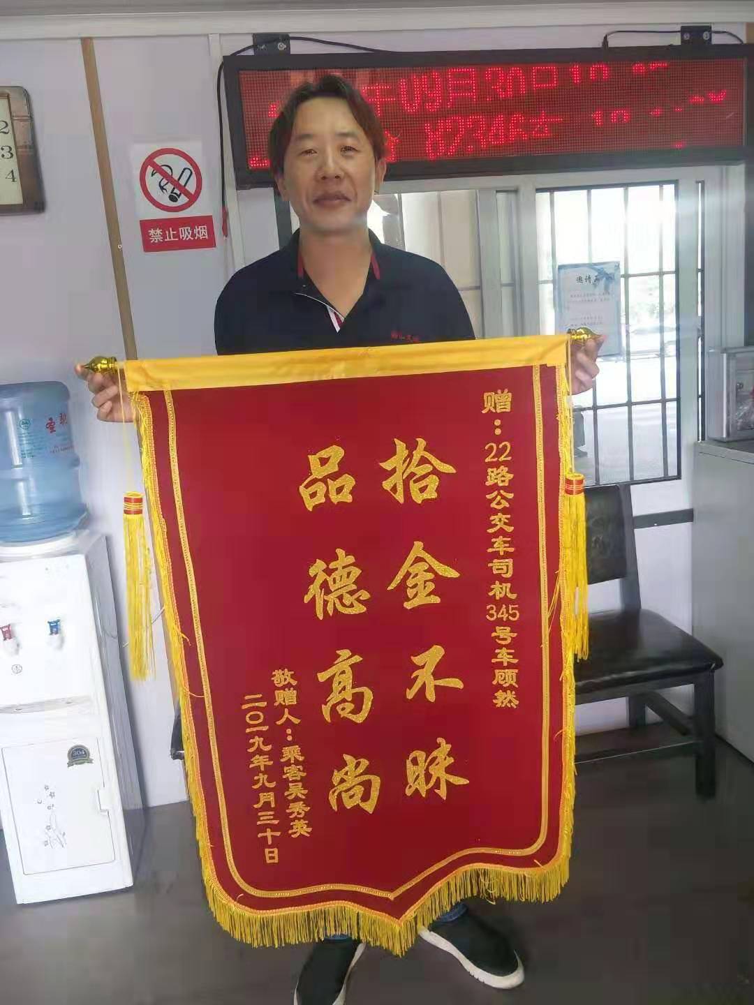 “感謝公交公司培養(yǎng)了這么好的師傅啊,要不是你們主動(dòng)打電話給我,我丟都不道哪丟的,我還得去補(bǔ)證件太麻煩了!” 9月30日一大早,家住在鐵西區(qū)的吳大娘手拿錦旗急匆匆來到了公交22線樞紐站休息室內(nèi),找到3080345號(hào)車駕駛員顧然師傅,親自將印有“品德高尚,拾金不昧”的錦旗送到他的手中。 原來在3天前的下午,吳大娘在鐵西區(qū)委乘坐22線公交車后,因隨身攜帶的東西太多,把手提包及背包都放在了座椅的一側(cè),吳大娘在二臺(tái)子站下車后回到家中突然發(fā)現(xiàn)背包沒有了,吳大娘心急如焚,因?yàn)楸嘲锊粌H僅有幾十元的現(xiàn)金還有很多重要的證件及證明材料,這些東西對(duì)自己十分重要,補(bǔ)辦十分不便。因?yàn)樯狭四昙o(jì),吳大娘記不起背包到底丟在哪里了,正在焦急尋找之時(shí),吳大娘接到了鞍山交運(yùn)集團(tuán)三公司客運(yùn)八隊(duì)駕駛員顧師傅的電話,詢問她是否丟失了一個(gè)背包。顧大娘接到電話后立即趕到站前樞紐站調(diào)度室,取回了遺失的背包!原來在公交車到終點(diǎn)后,顧師傅在車內(nèi)例行巡視時(shí)發(fā)現(xiàn)了這個(gè)背包,打開后找到了有吳大娘的聯(lián)系方式并撥打了這個(gè)電話。 22線不僅是文明服務(wù)線路更是交運(yùn)集團(tuán)迎賓線路,從創(chuàng)建迎賓線路開始,全體22線駕駛員始終不忘初心,為的就是服務(wù)好每一名乘客。顧然同志所在路隊(duì)已對(duì)顧然同志給予了公開表?yè)P(yáng),并勉勵(lì)全體同志要把“學(xué)習(xí)雷鋒好榜樣,優(yōu)質(zhì)服務(wù)暖人心”的精神繼續(xù)發(fā)揚(yáng)。
