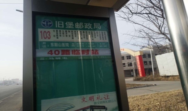40線站序:明達(dá)世紀(jì)花園 – 鞍山人才市場-米蘭小區(qū) –匯園大道 – 莘英路-長興街 - 鐵東區(qū)法院- 新營廣場 – 解放東路- 園林大道- 中華南路 - 榮譽(yù)街 - 新華園 - 交通賓館 - 千山區(qū)政府 – 舊堡郵政局(臨時(shí)站)-舊堡 - 千山區(qū)委--馬驛屯
