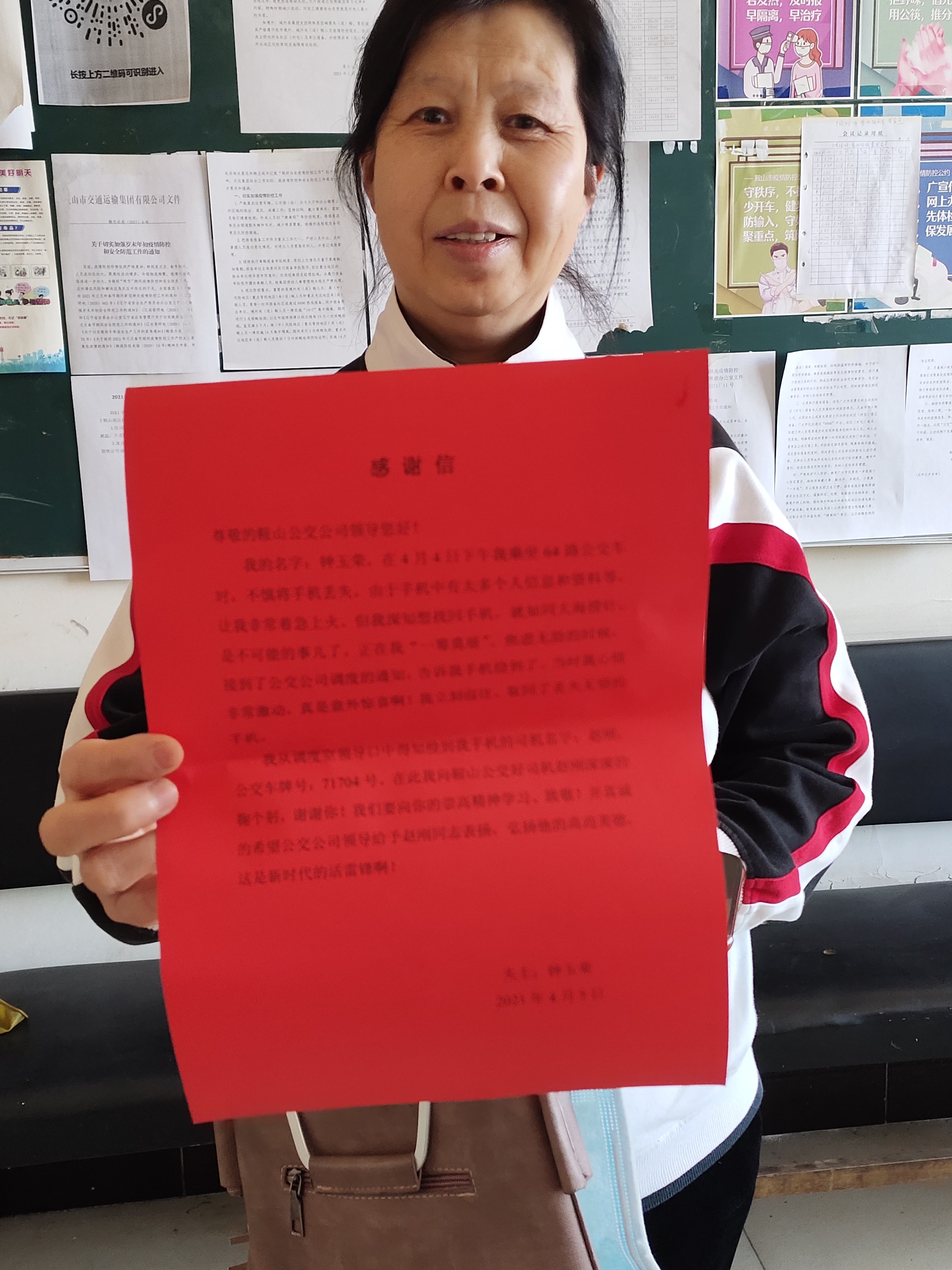 “如果手機(jī)丟失了會很麻煩,幸好碰到你這樣好司機(jī)……”市民鐘女士對交運(yùn)集團(tuán)第三汽車分公司客運(yùn)七隊(duì)拾金不昧的優(yōu)秀駕駛員趙剛再三表示感謝。